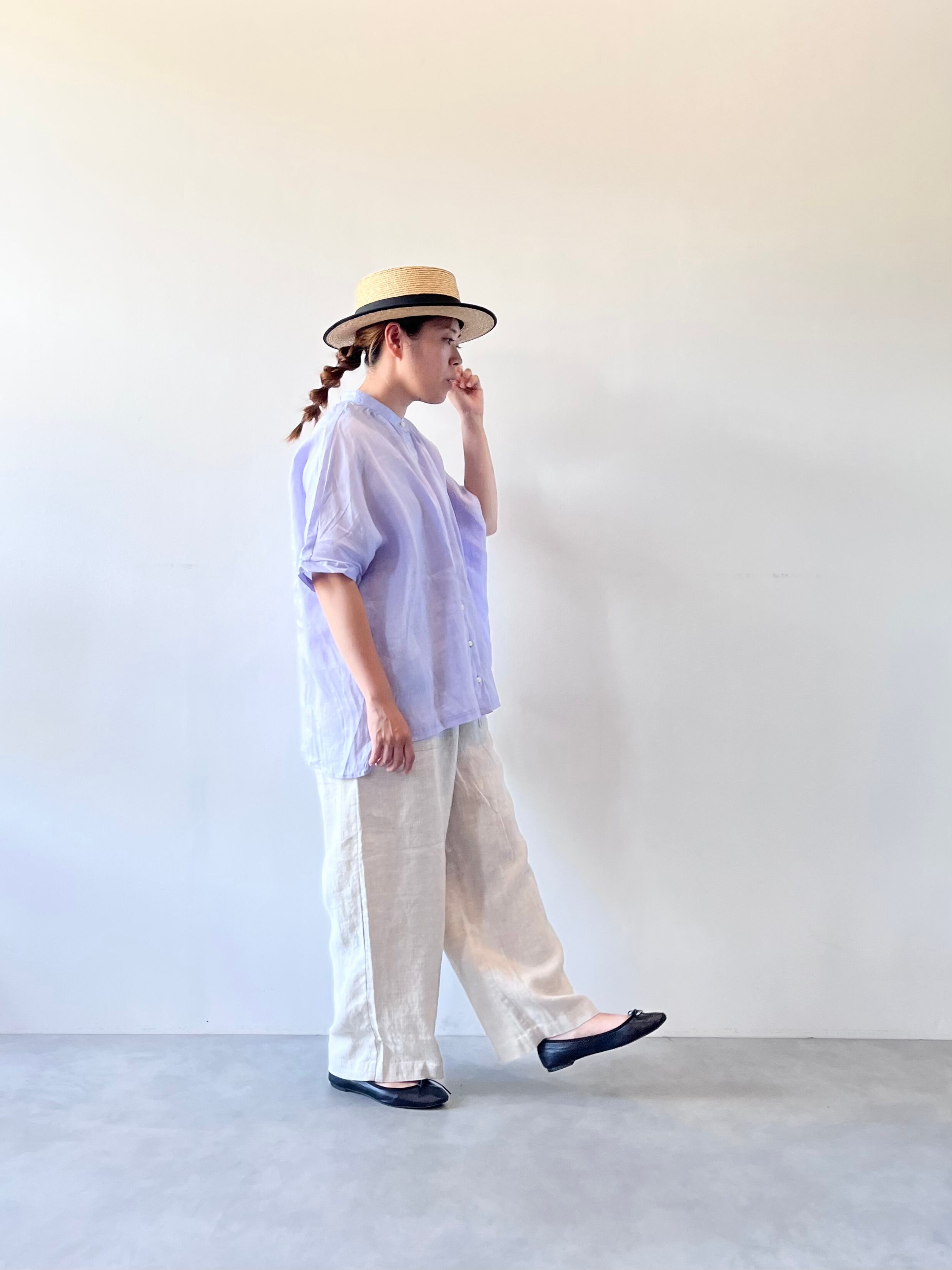 風合い豊かなリネン素材を使用した、涼しげで軽やかな着心地のシャツが入荷。 トレンド感のあるシアー素材で爽やかな印象を与えてくれます◎ すっきりとしたバンドカラーと後ろギャザーが上品な女性を演出します♩ ボタンを開けて羽織りとしても活躍します。 (モデル身長155cm) 素材:麻100% サイズ:着丈(前)51cm (後)56cm 身幅71cm