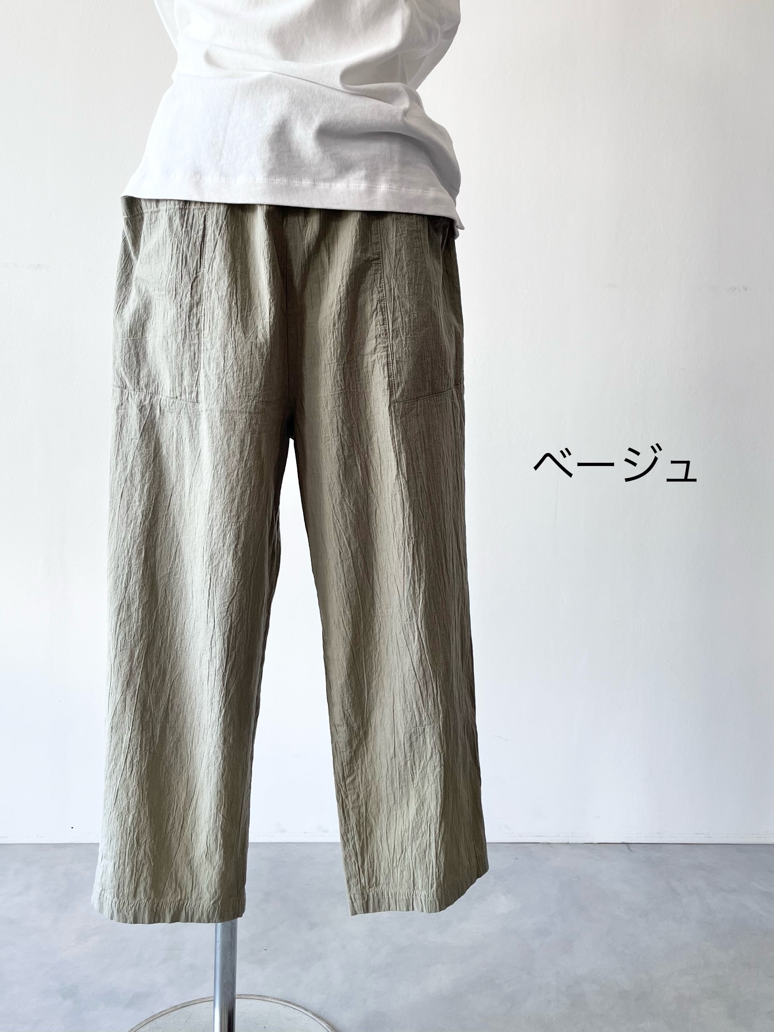 程よくゆとりある綺麗なストレートシルエットでウエストも総ゴム仕様で楽に穿けるのも嬉しいポイント◎