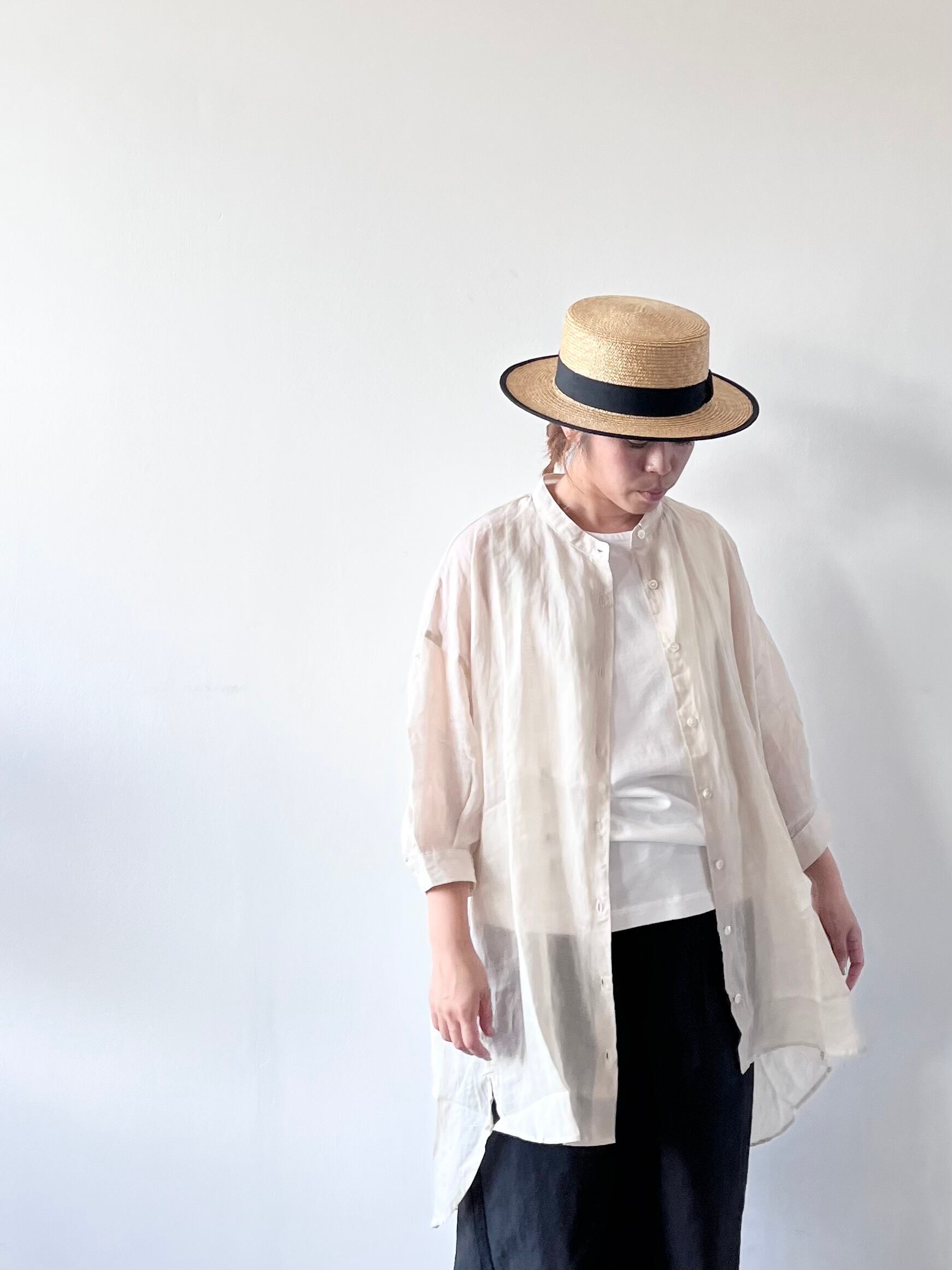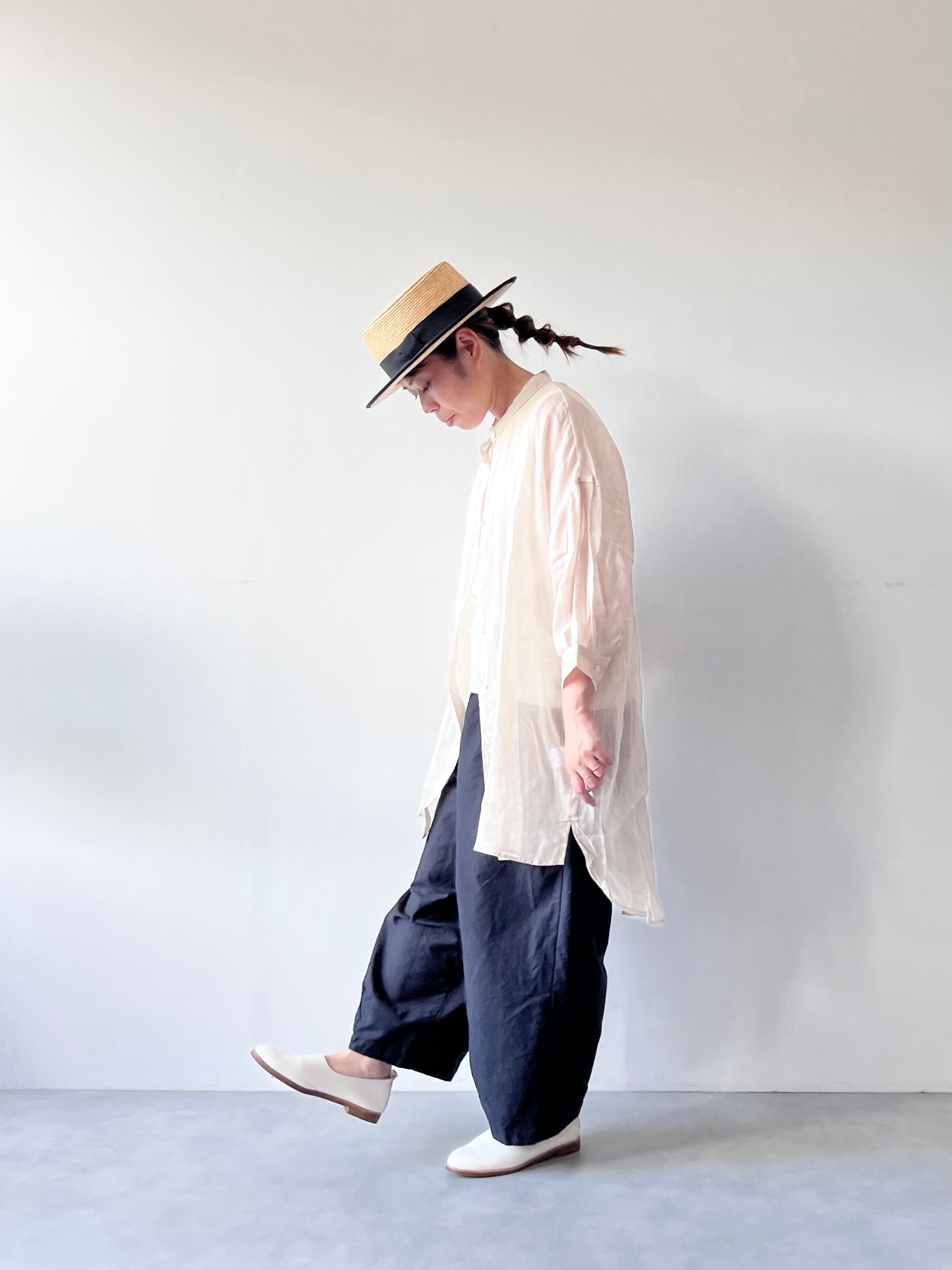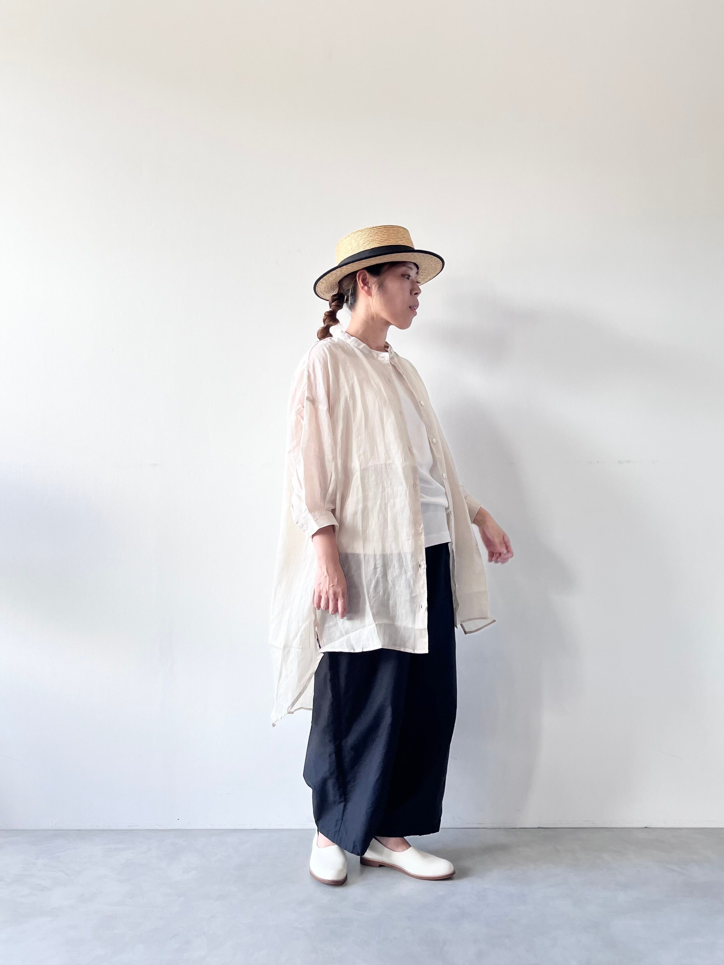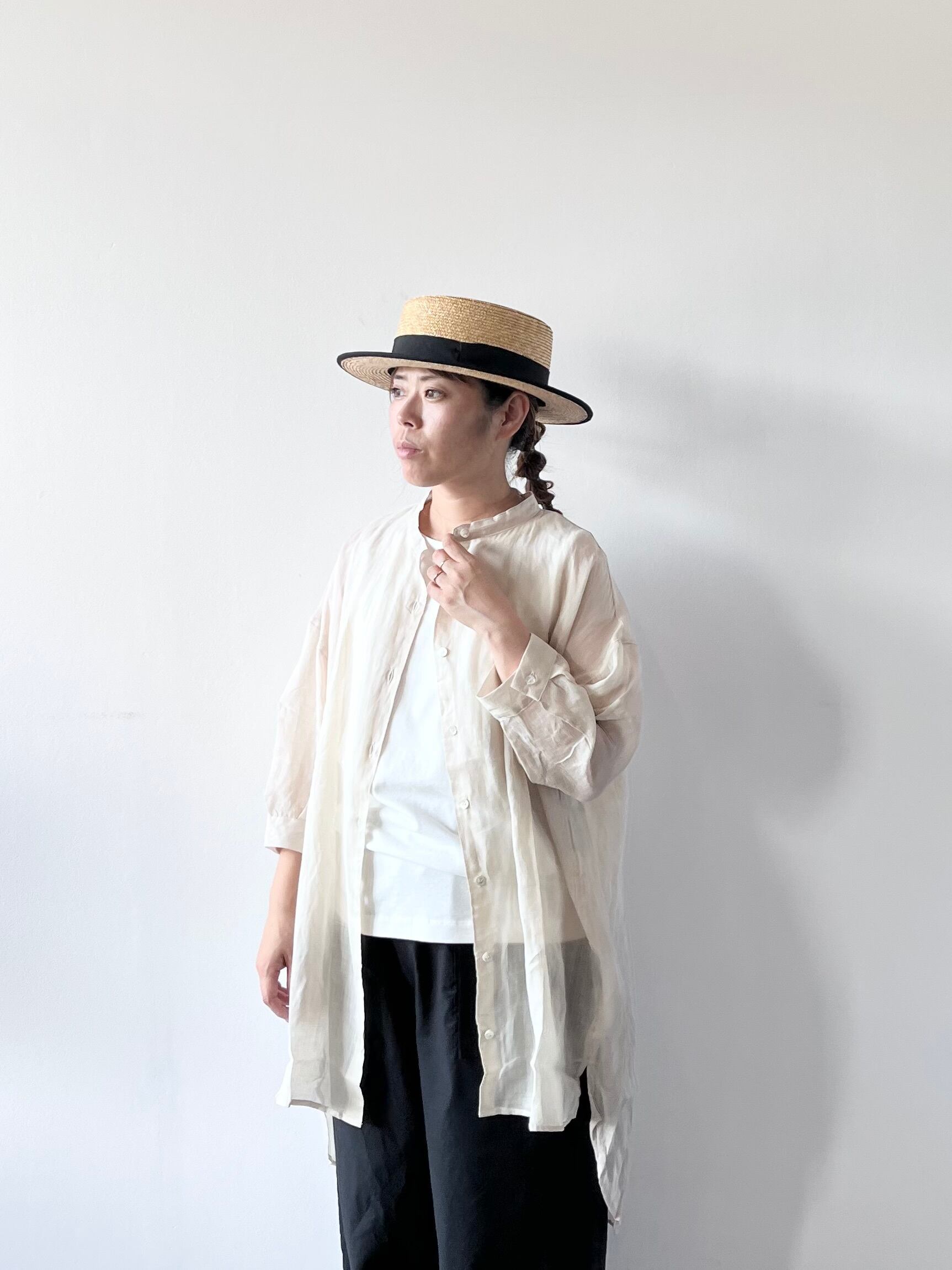 薄手で少し透け感のある素材が涼し気で、タンクトップなどをインナーに羽織りのスタイルの着こなしも◎