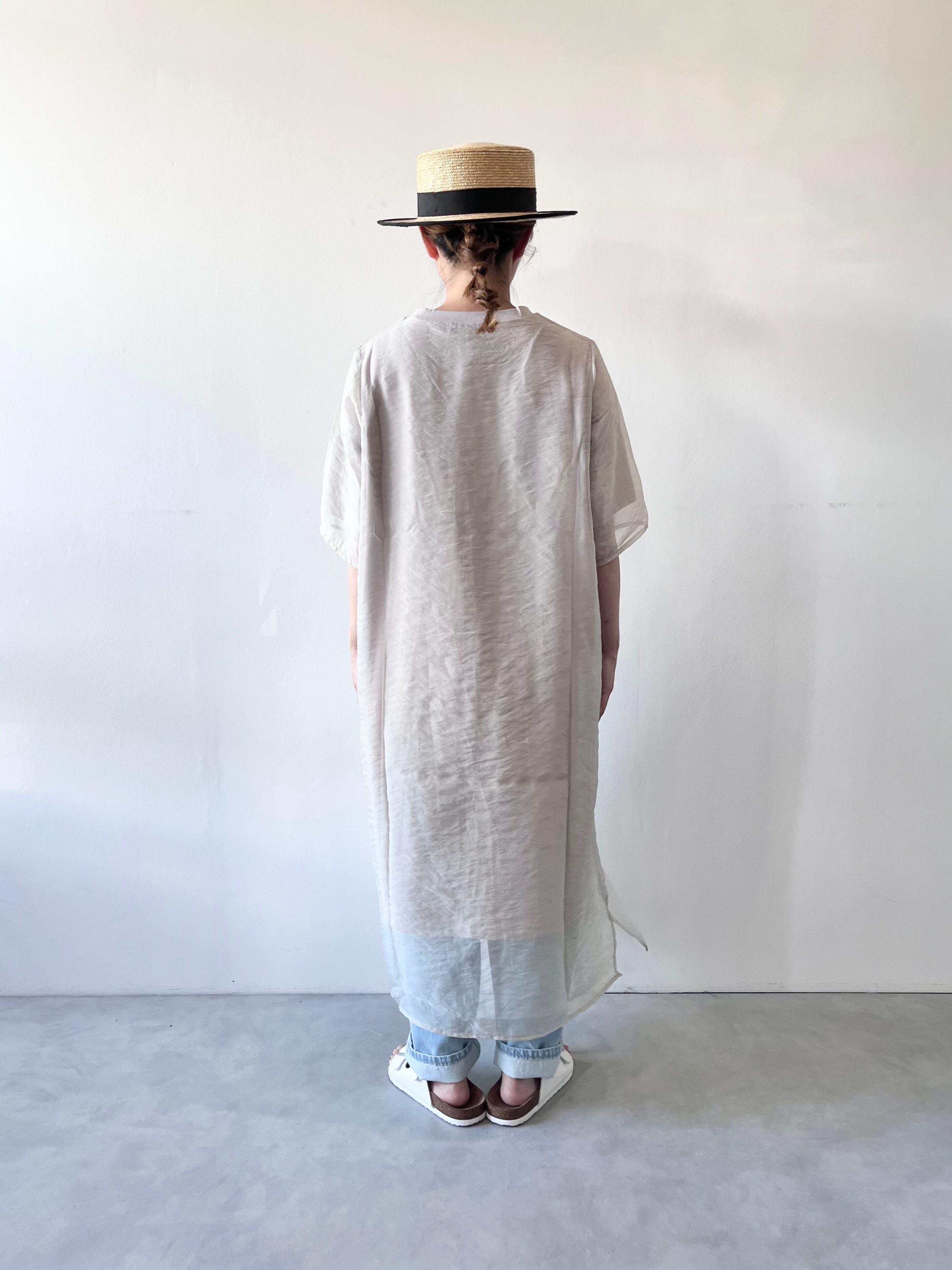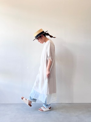 1枚でも、カットソーは膝が隠れる丈感で、オーガンジーがすねの辺りまであるので、夏らしい足元で涼しげに着用いただけます。