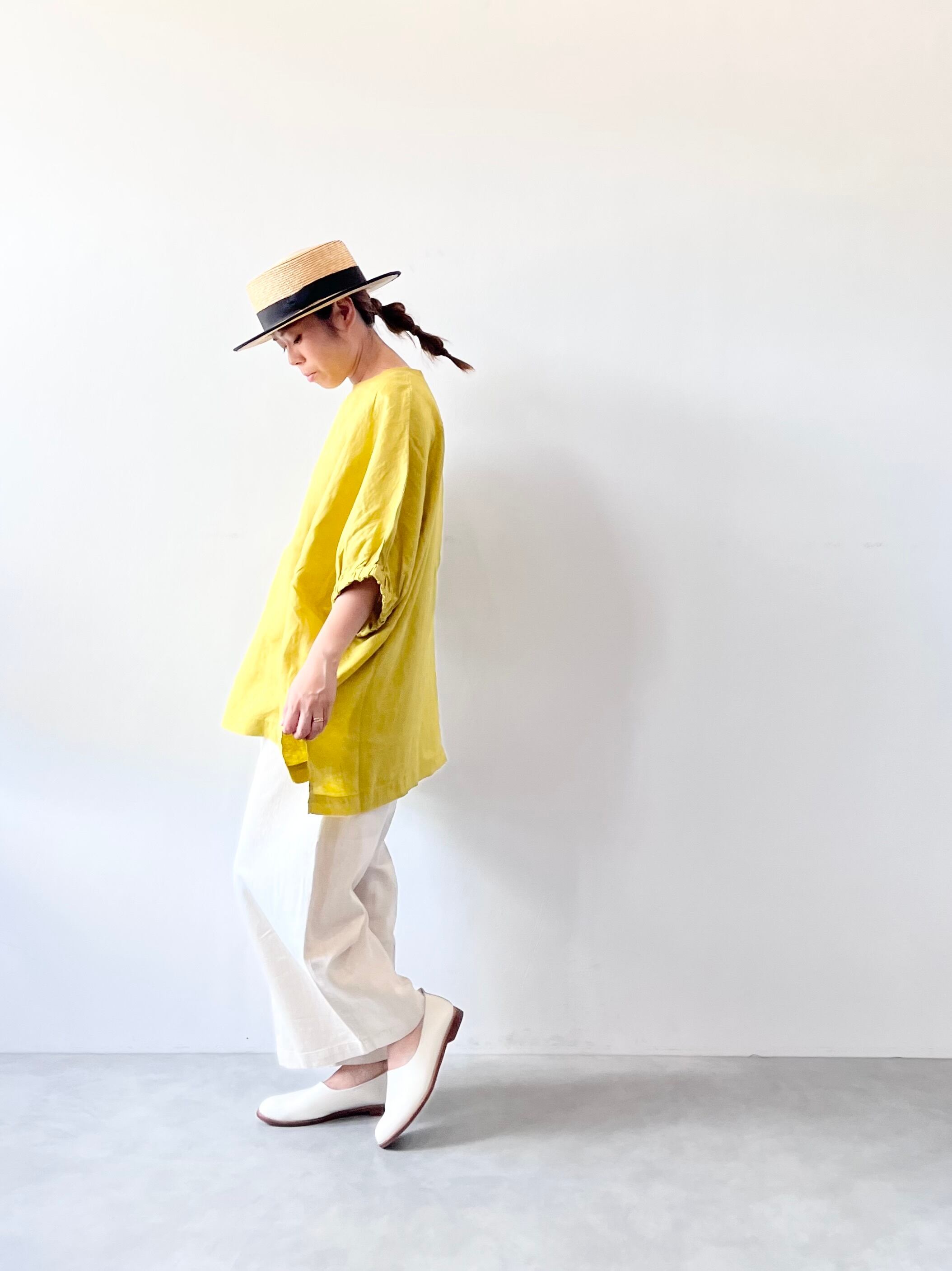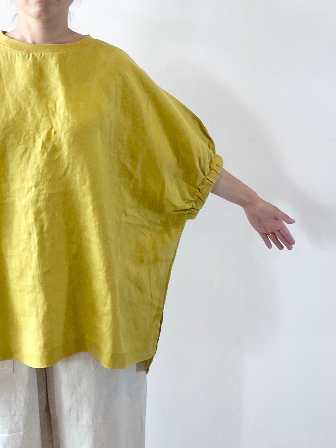 HEAVENLY リネンギャザースリーブリブネックプルオーバー