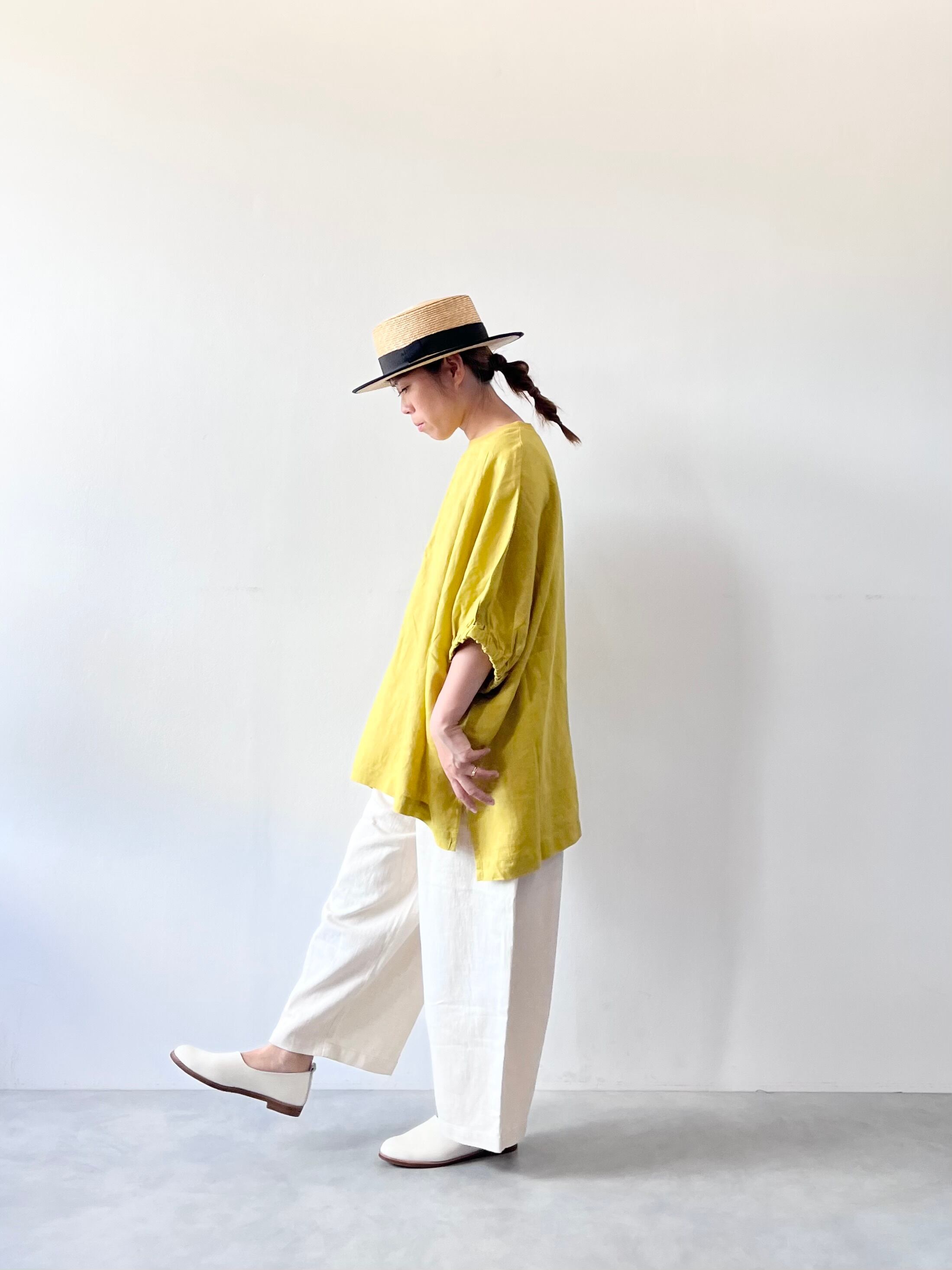 厚すぎず薄すぎないリネン生地を使用したゆったりした着心地のプルオーバー。