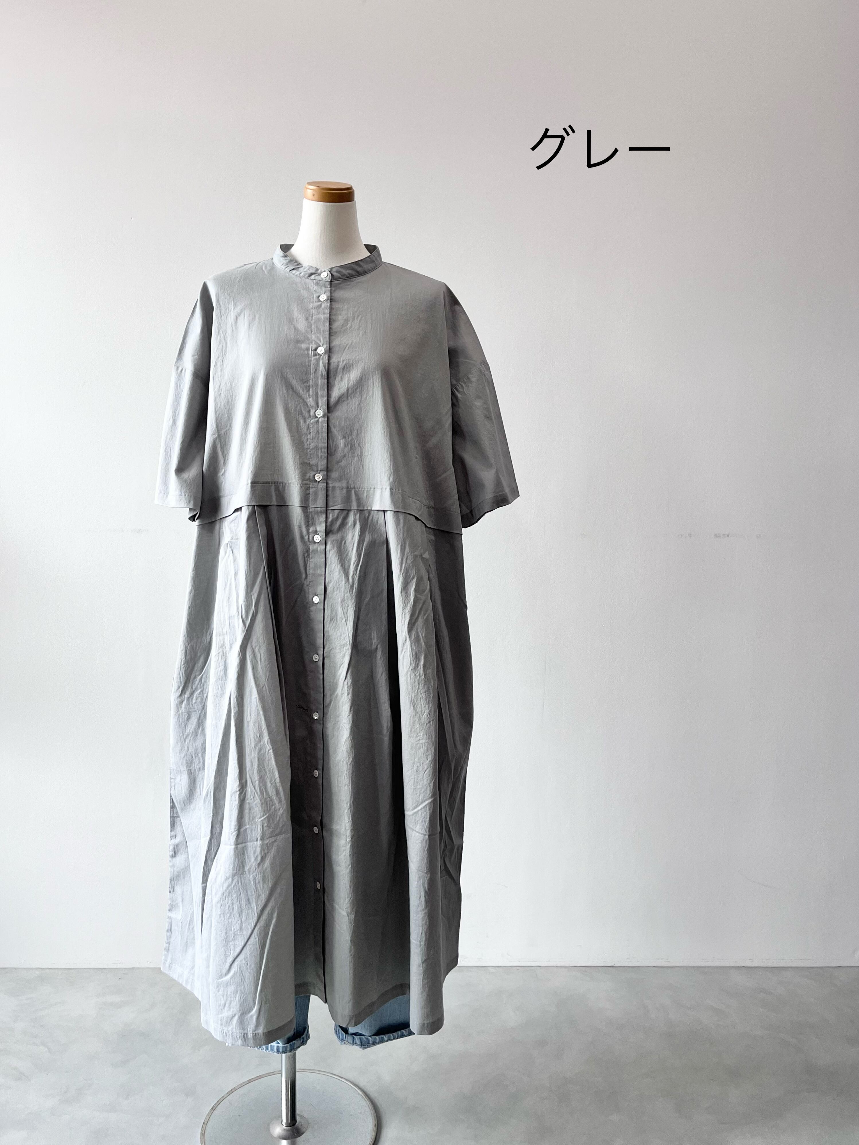 透け感も少なくすっきりとしたバンドカラーのワンピースで、一枚着は勿論ですがボタンを開けて羽織のスタイルにもオススメです♩