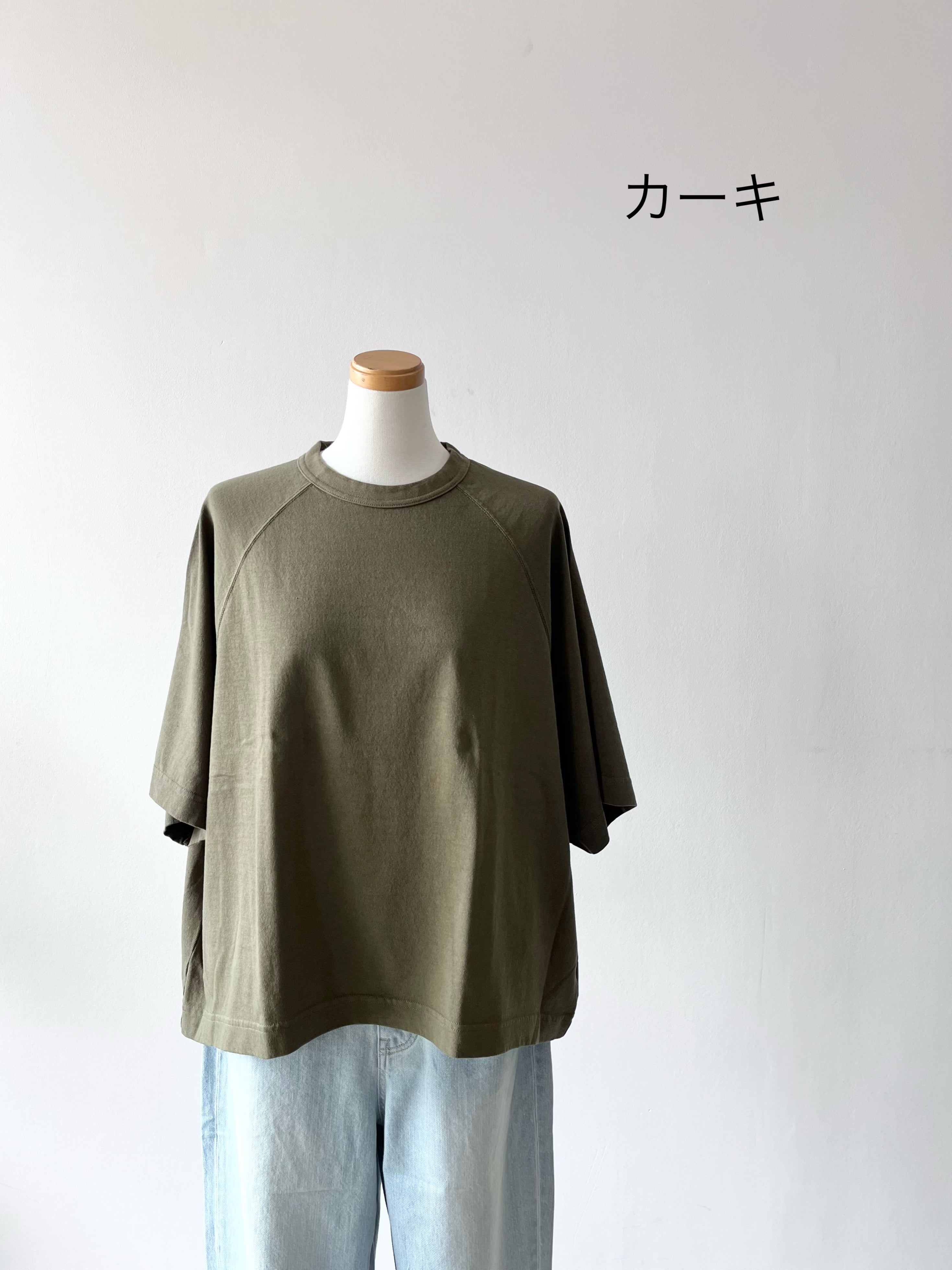 シンプルながら前後差のある着丈や半袖だけど少し長めの袖丈など自然と体型カバーもしつつ、洗練されたデザインで様々なボトムスとも相性良く合わせられます。