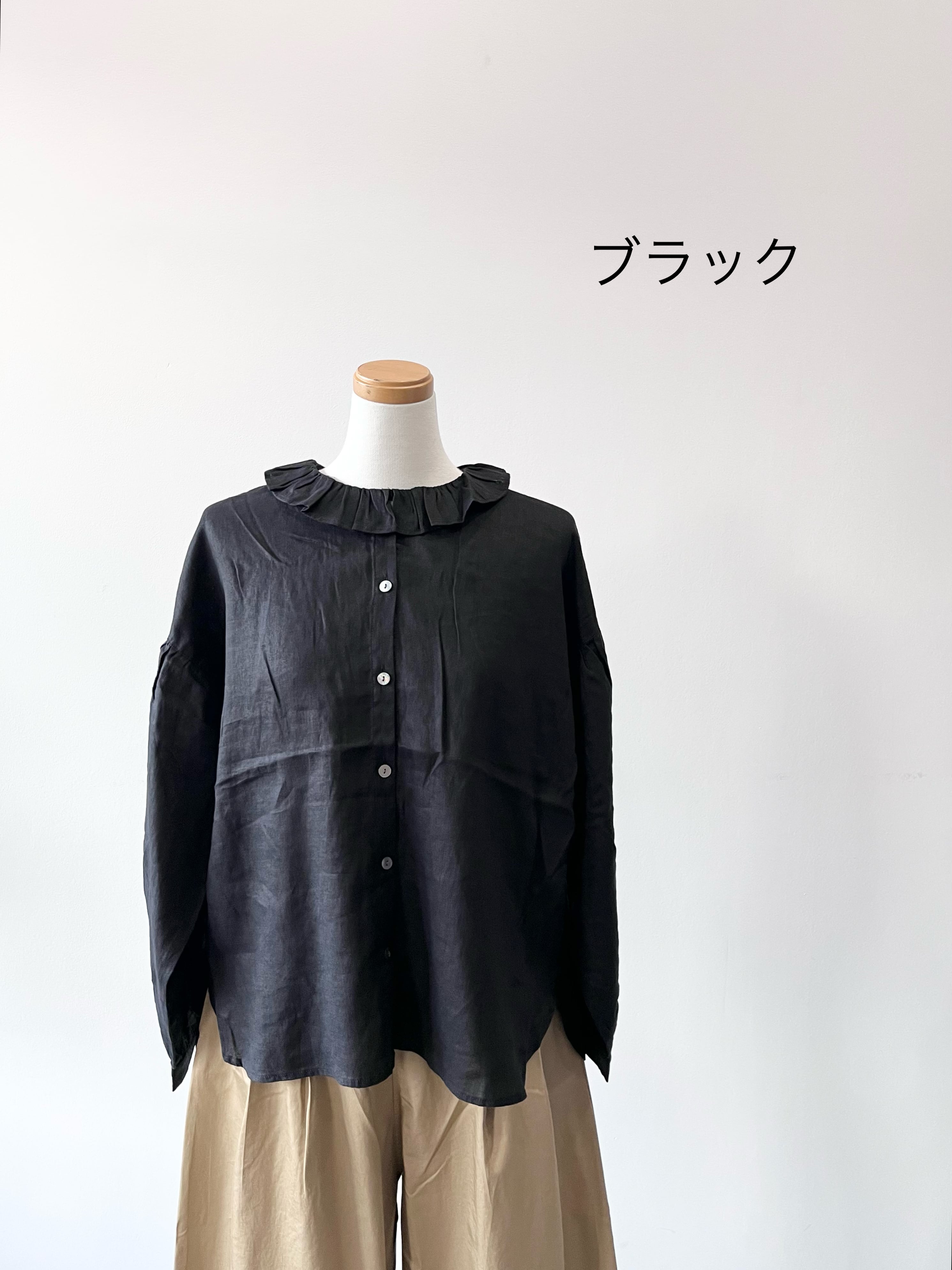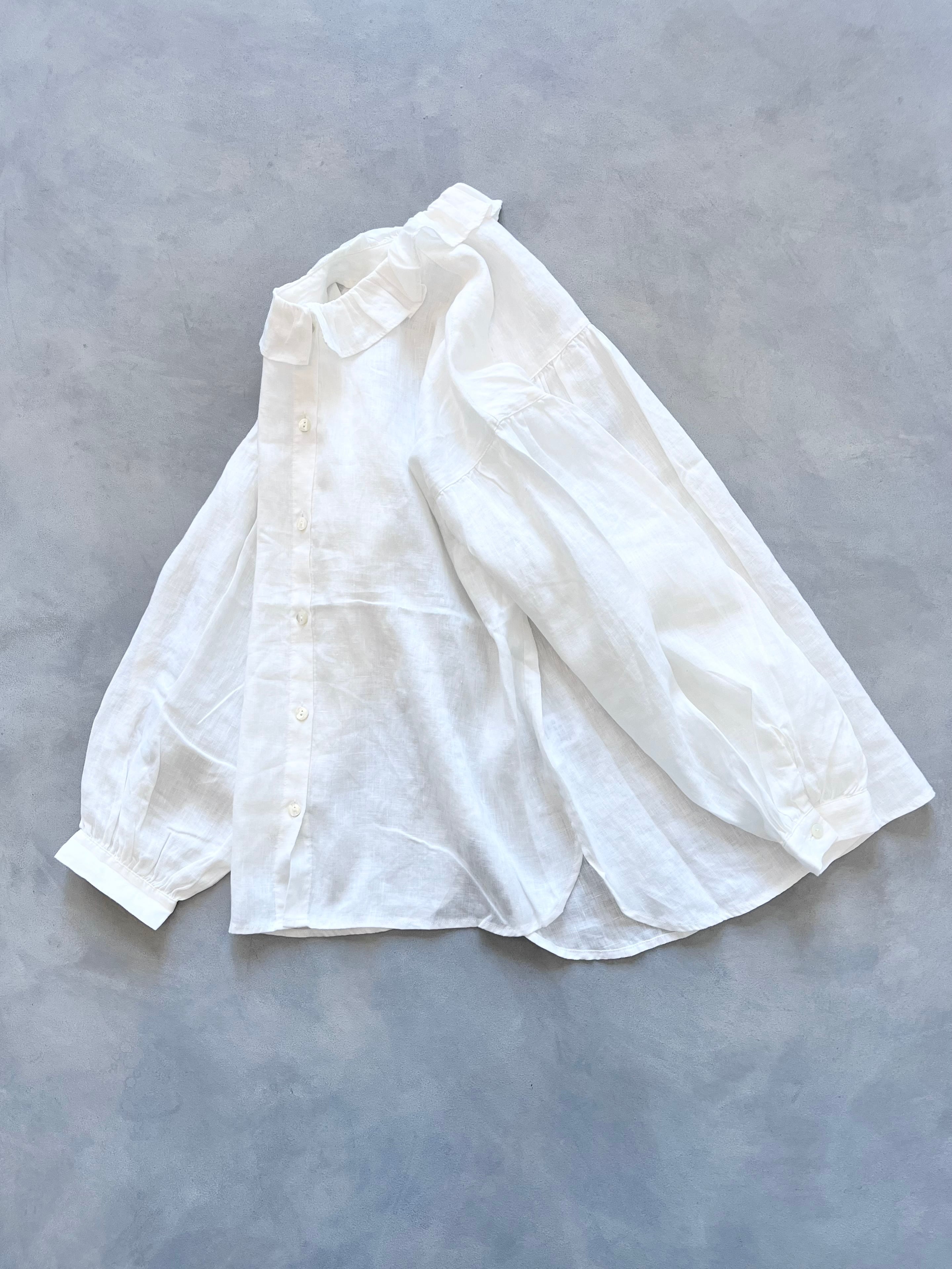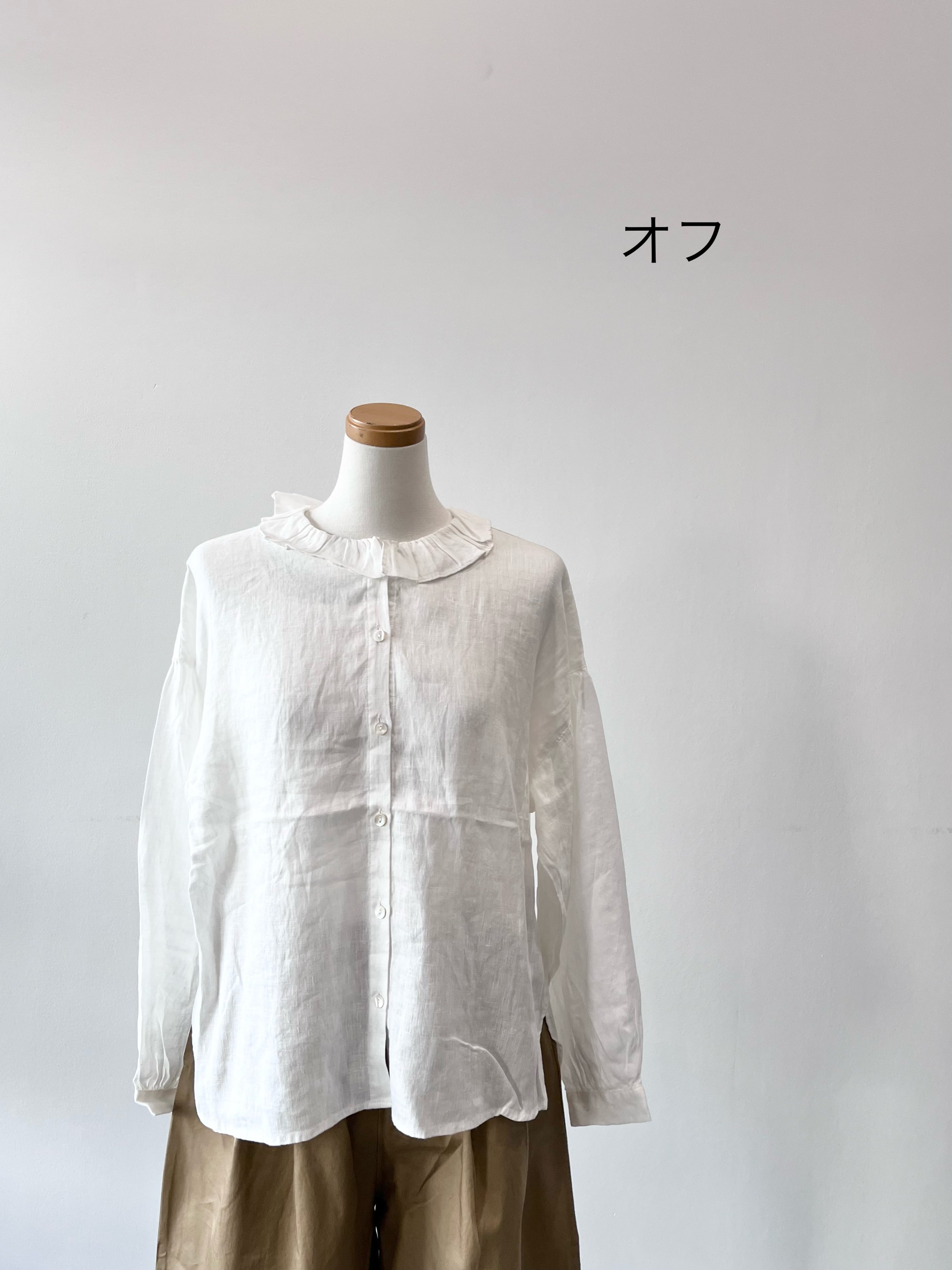 フリルカラーが可愛いヘンプ生地のブラウスです。