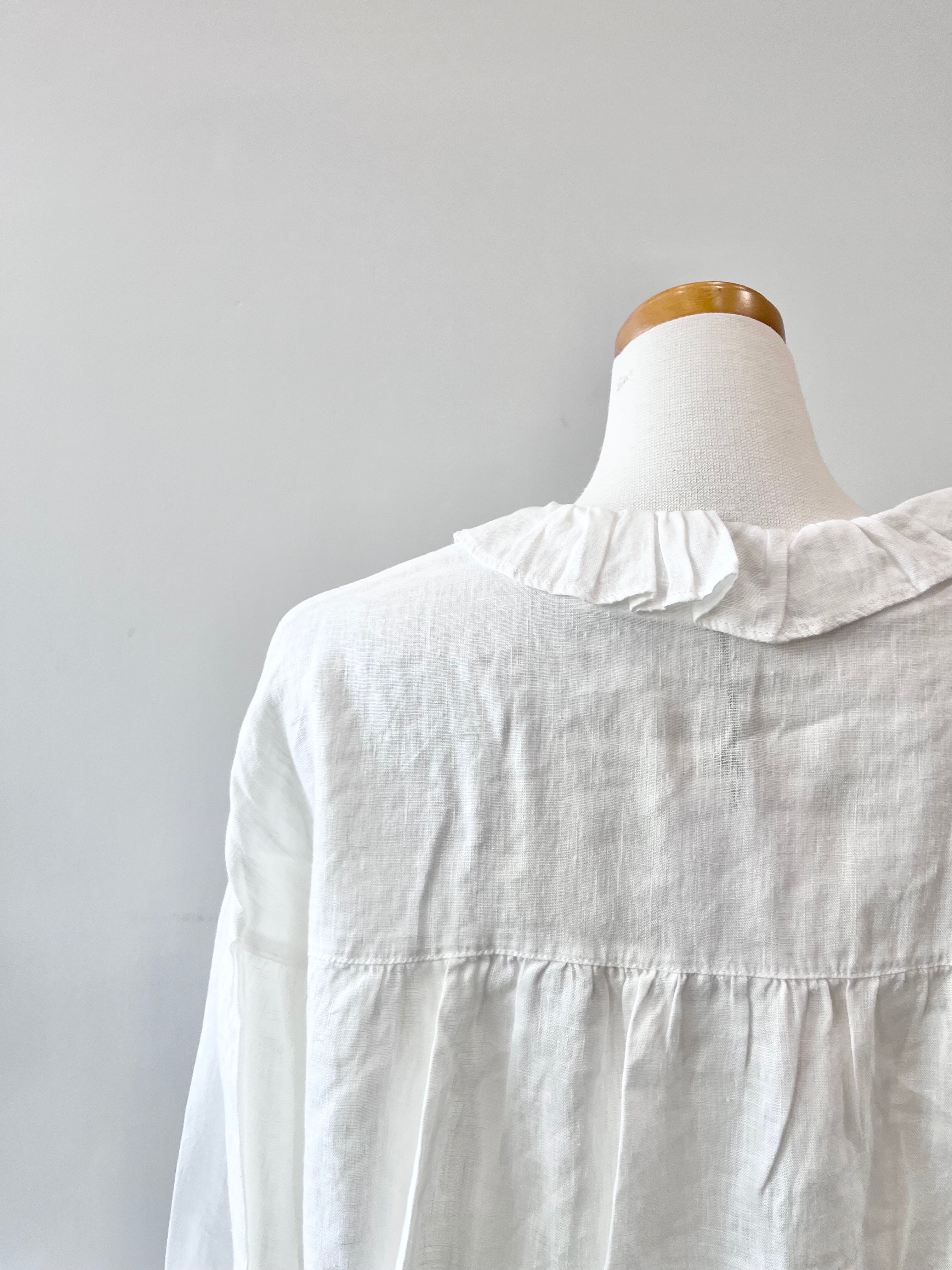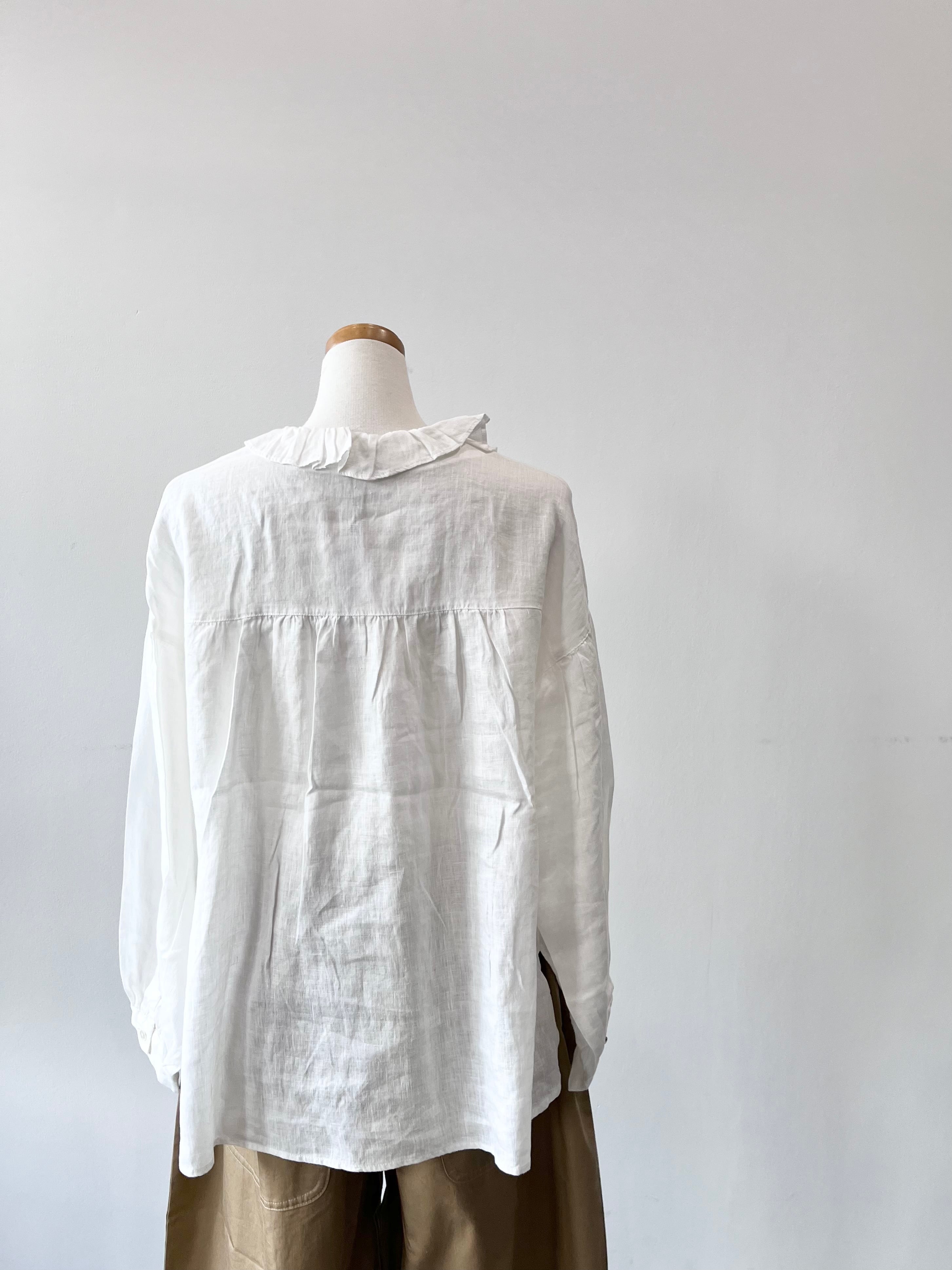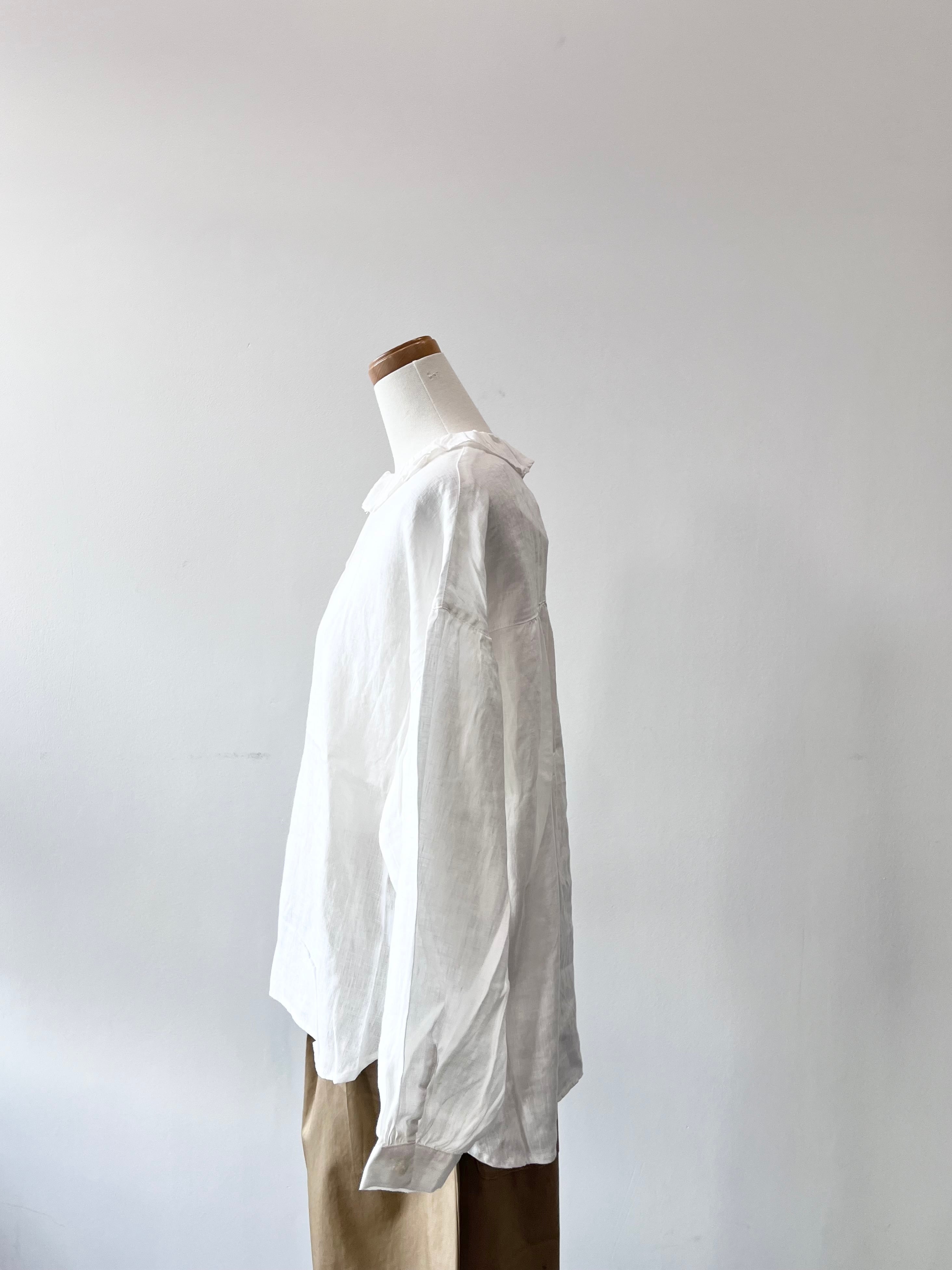 フリルカラーが可愛いヘンプ生地のブラウスです。
