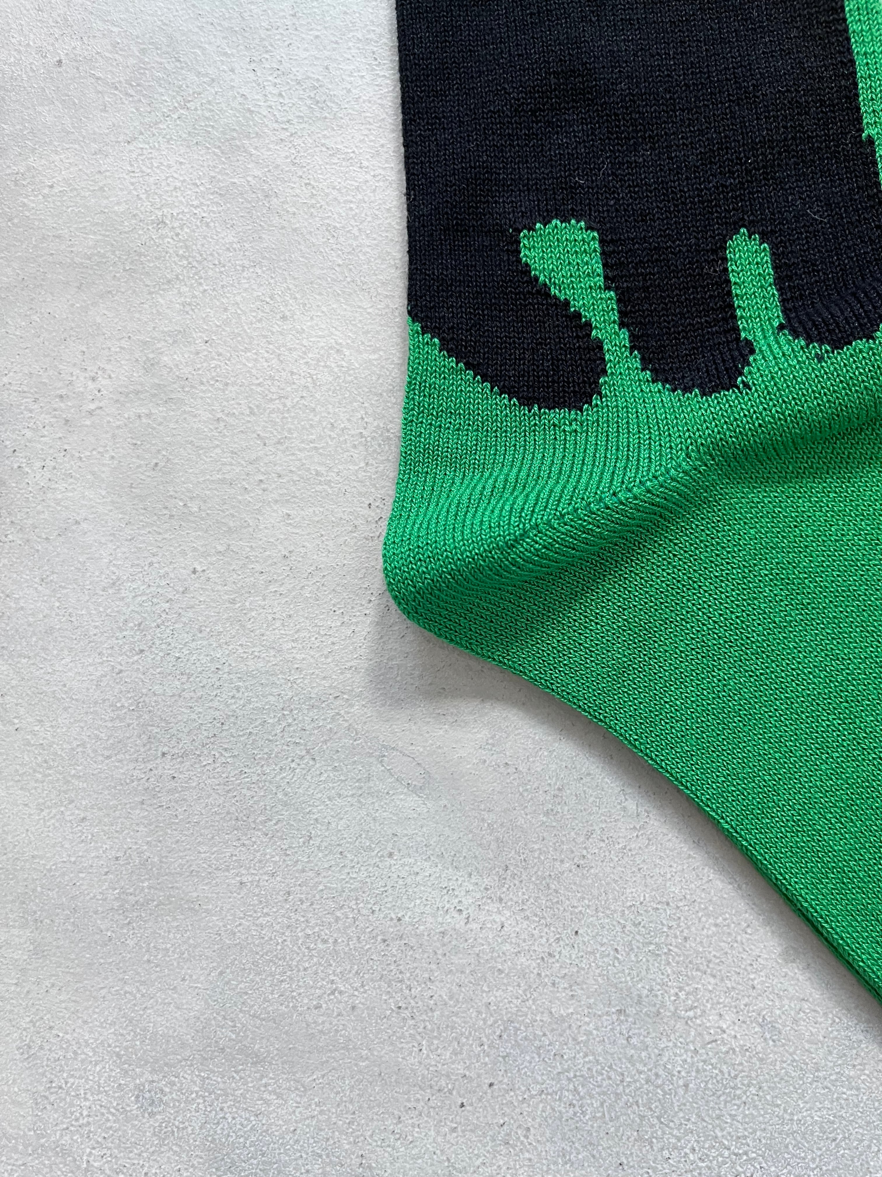 立ち姿が可愛い子猫がモチーフのソックスです。ベースはシルケット加工を施した毛羽の少ない光沢感のある綿糸を使用し、程よい厚みに編み立てました。 じっとこちらを見つめる猫がなんとも愛らしく、”ほっこり”させてくれる1足です。 素材:綿84% ナイロン14% レーヨン1% ポリウレタン1% サイズ:23cm~25cm 履き口からかかと21cm