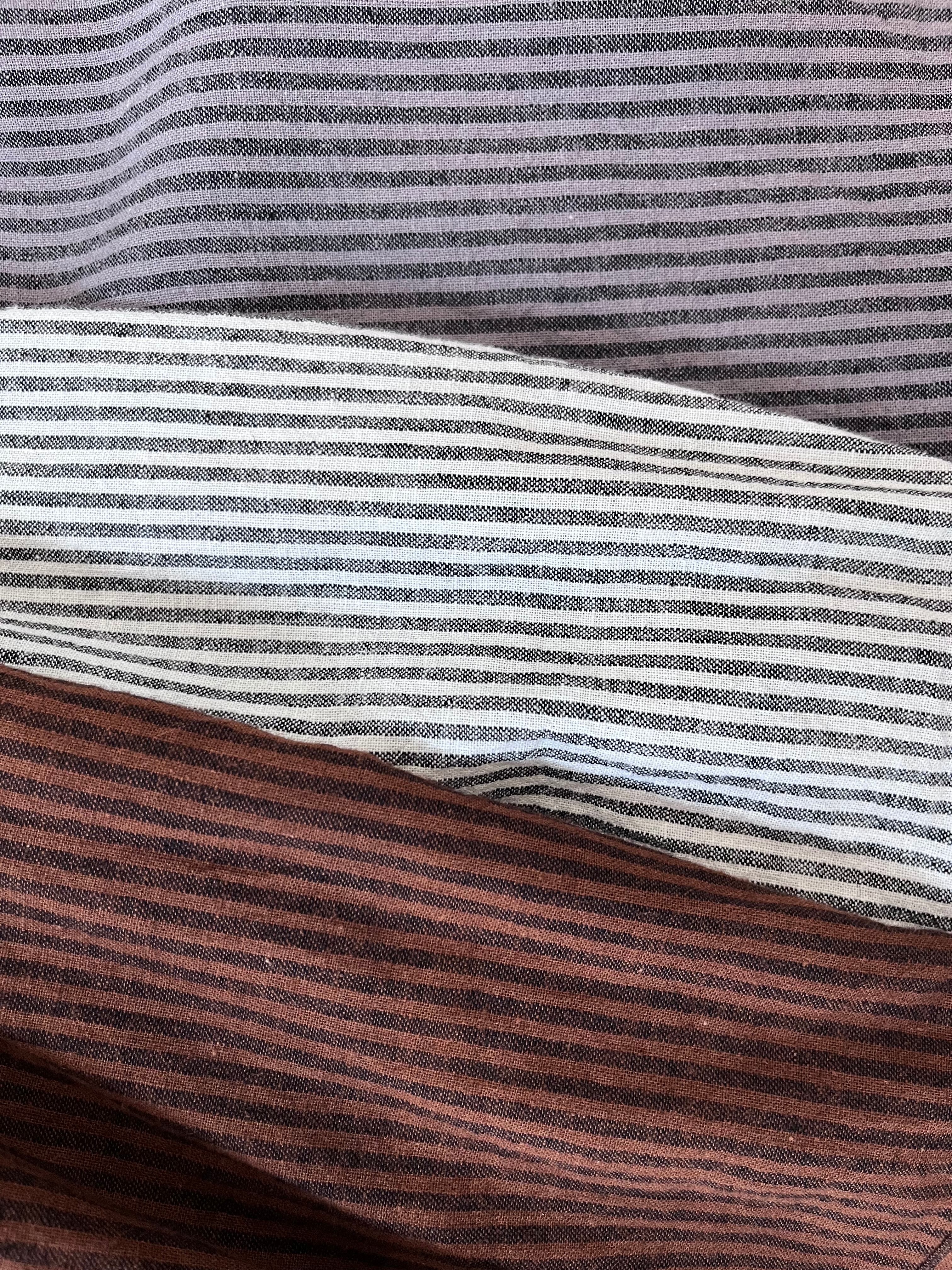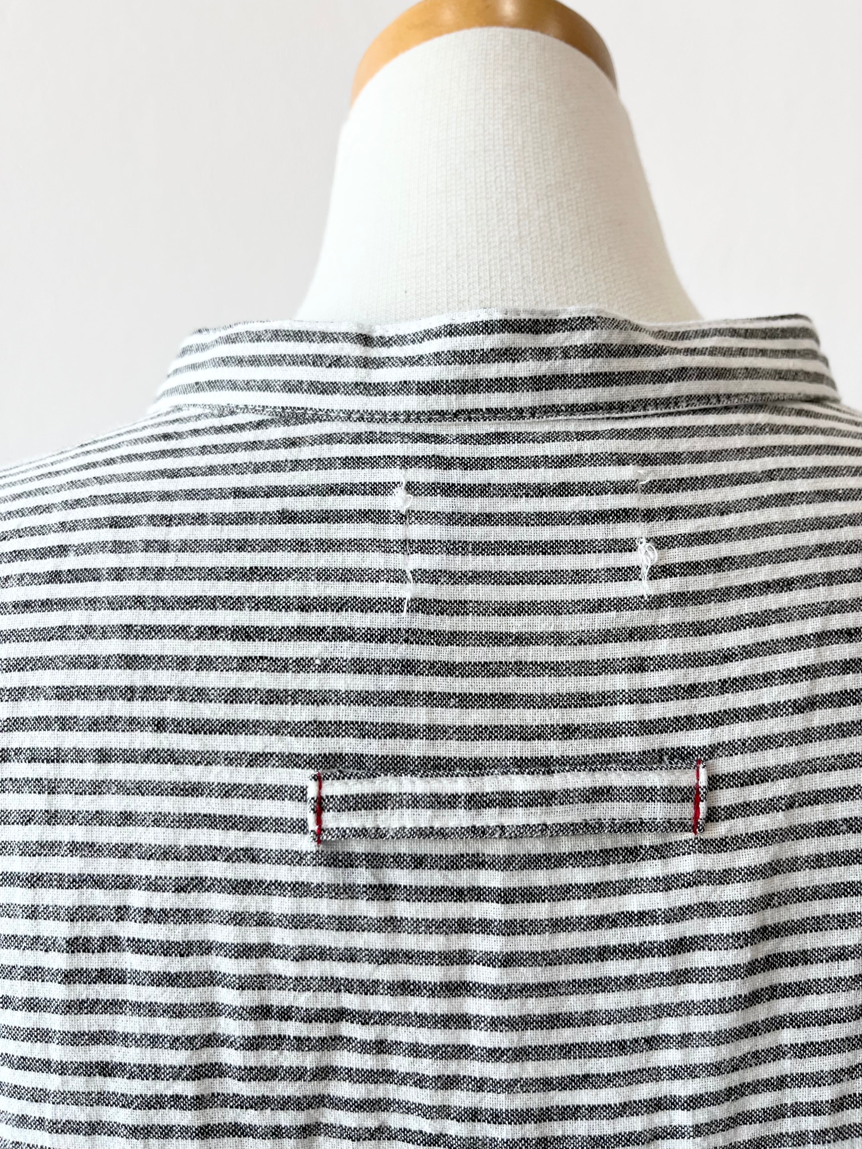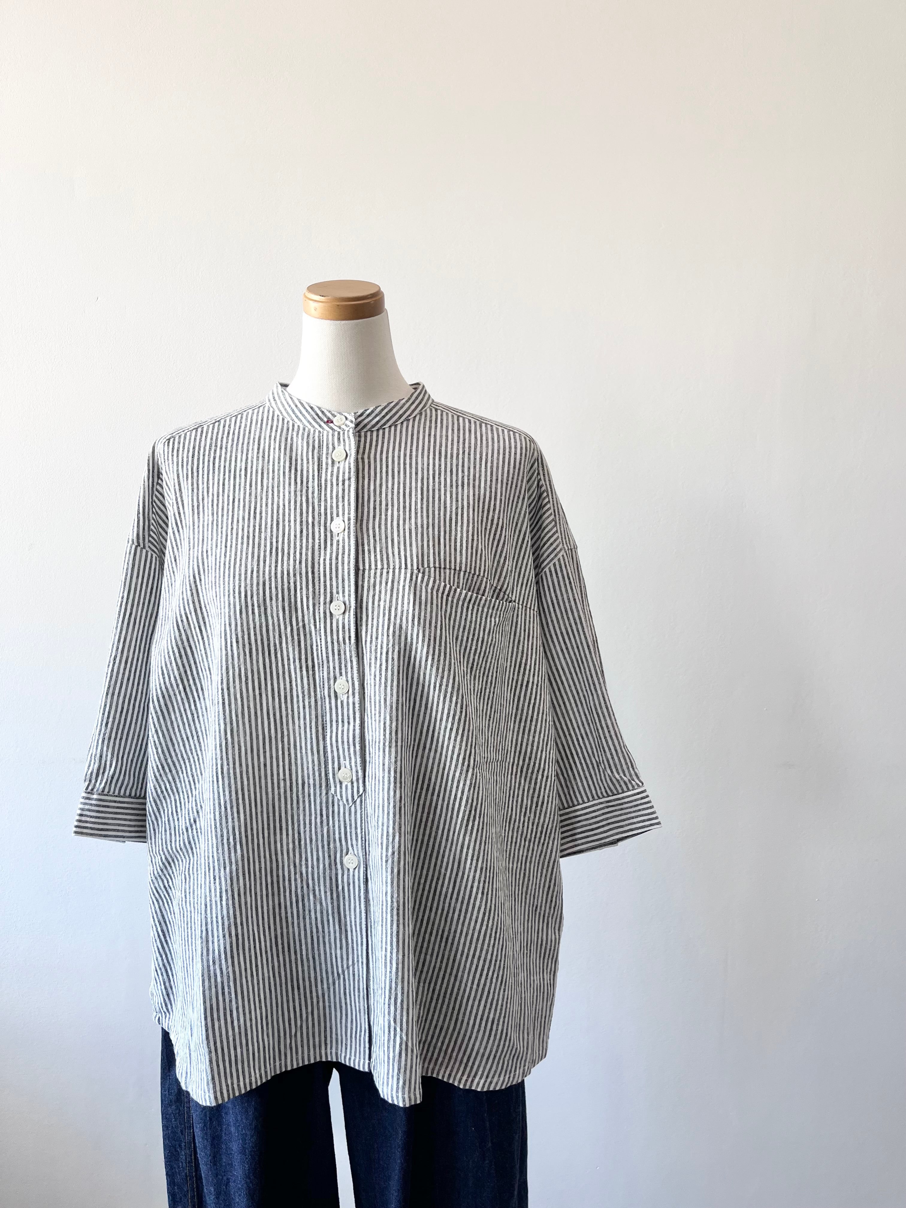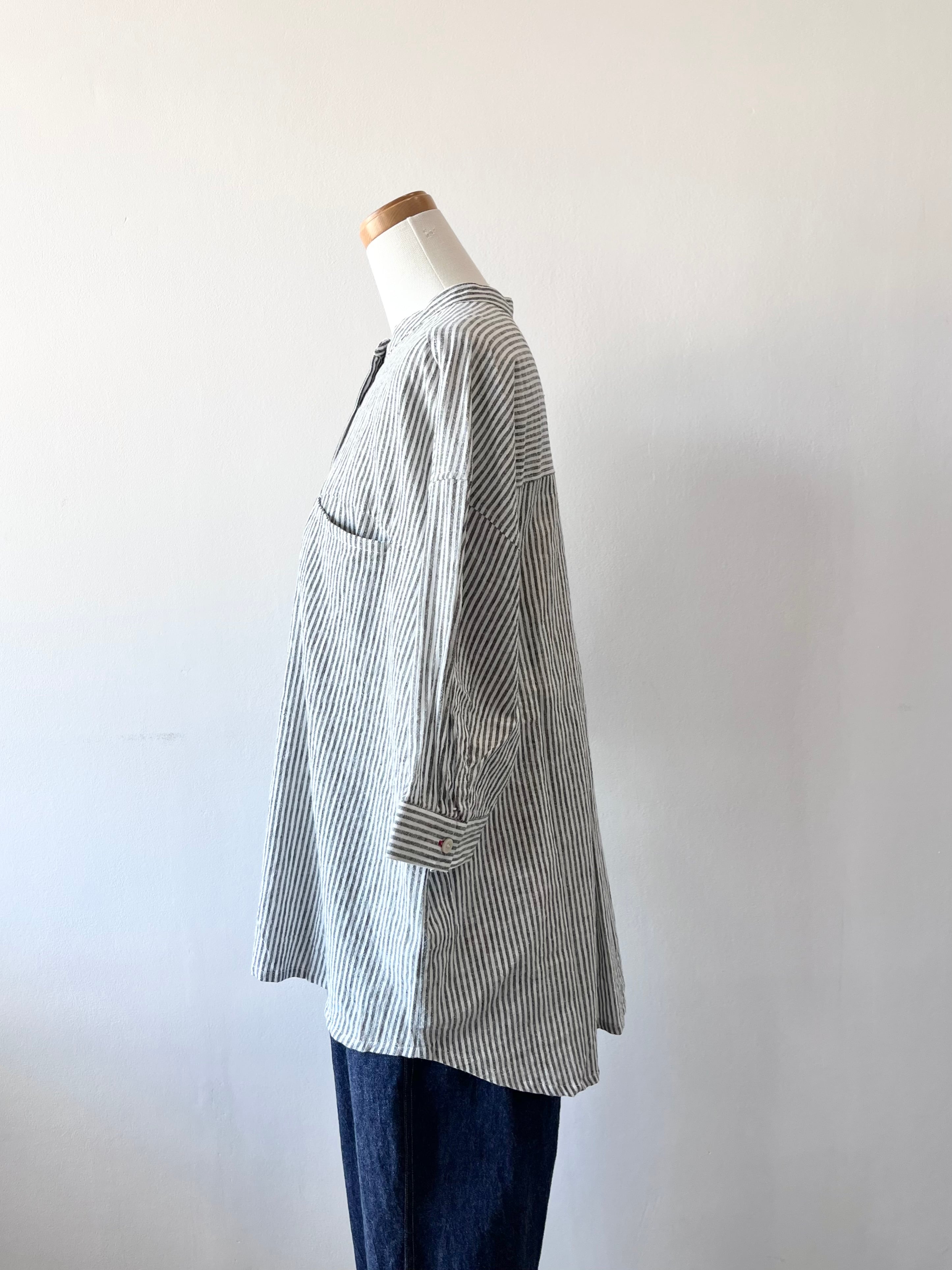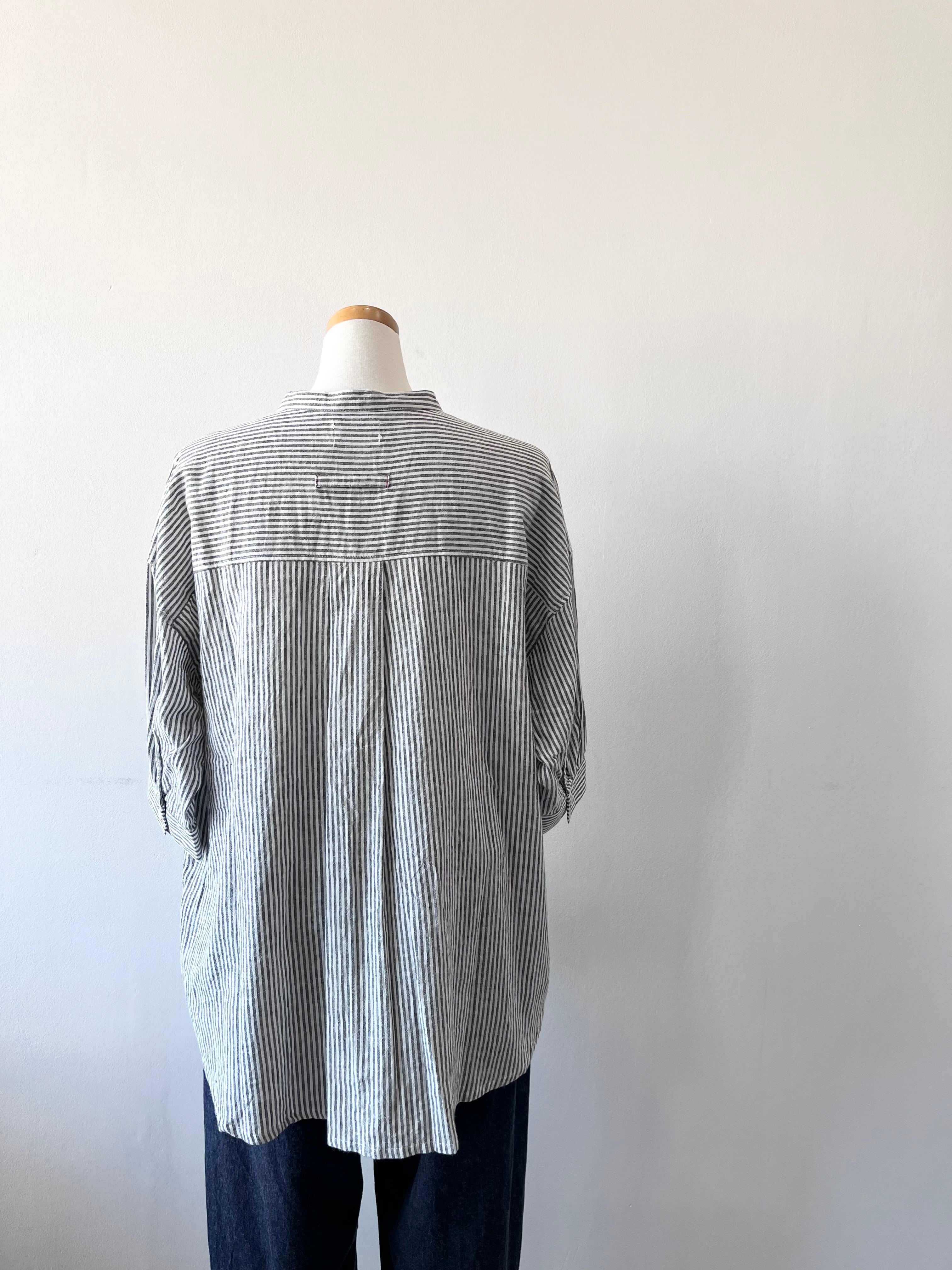 BLUE LAKE MARKET リネンコットン先染めストライプバックループシャツ