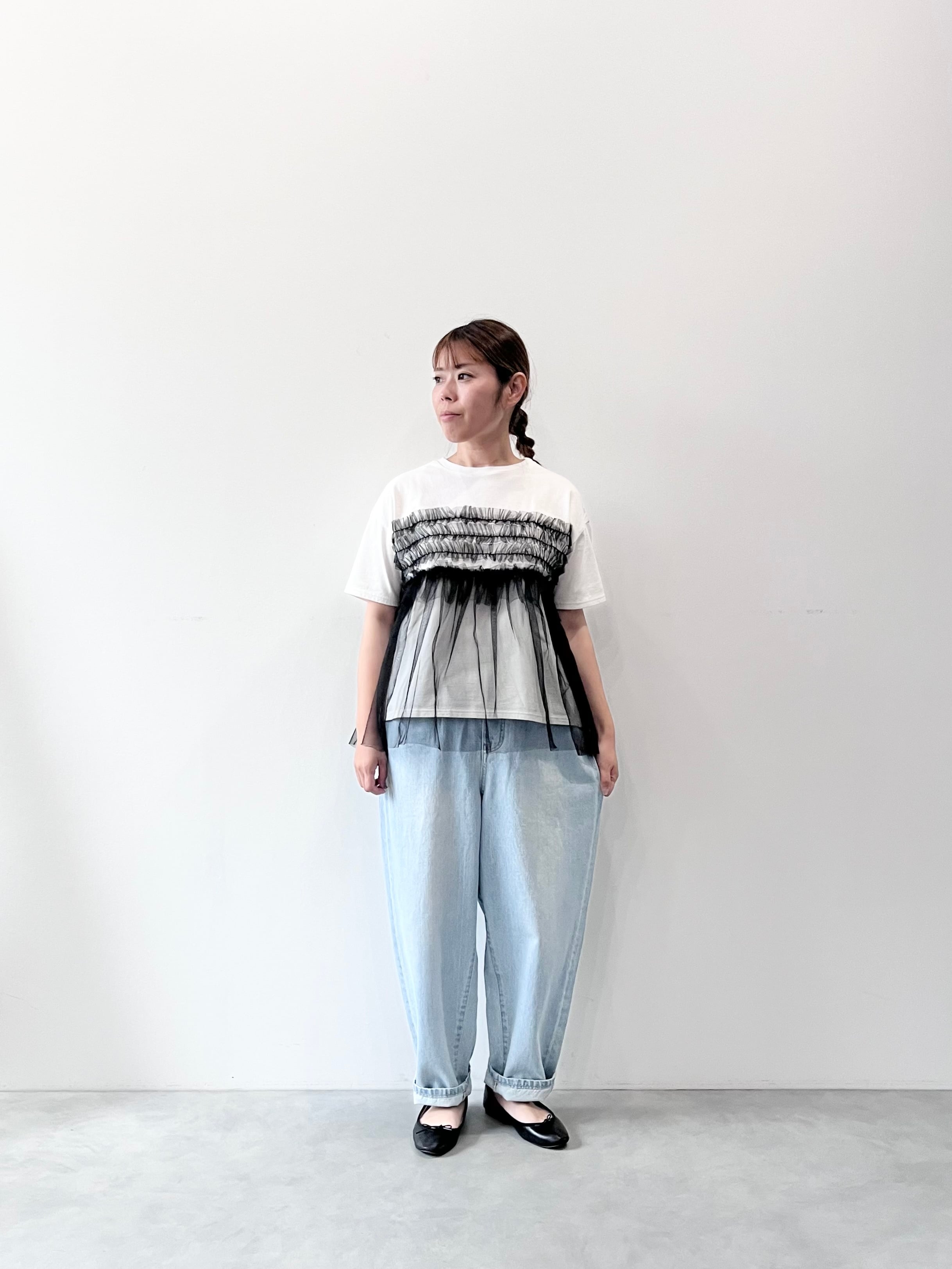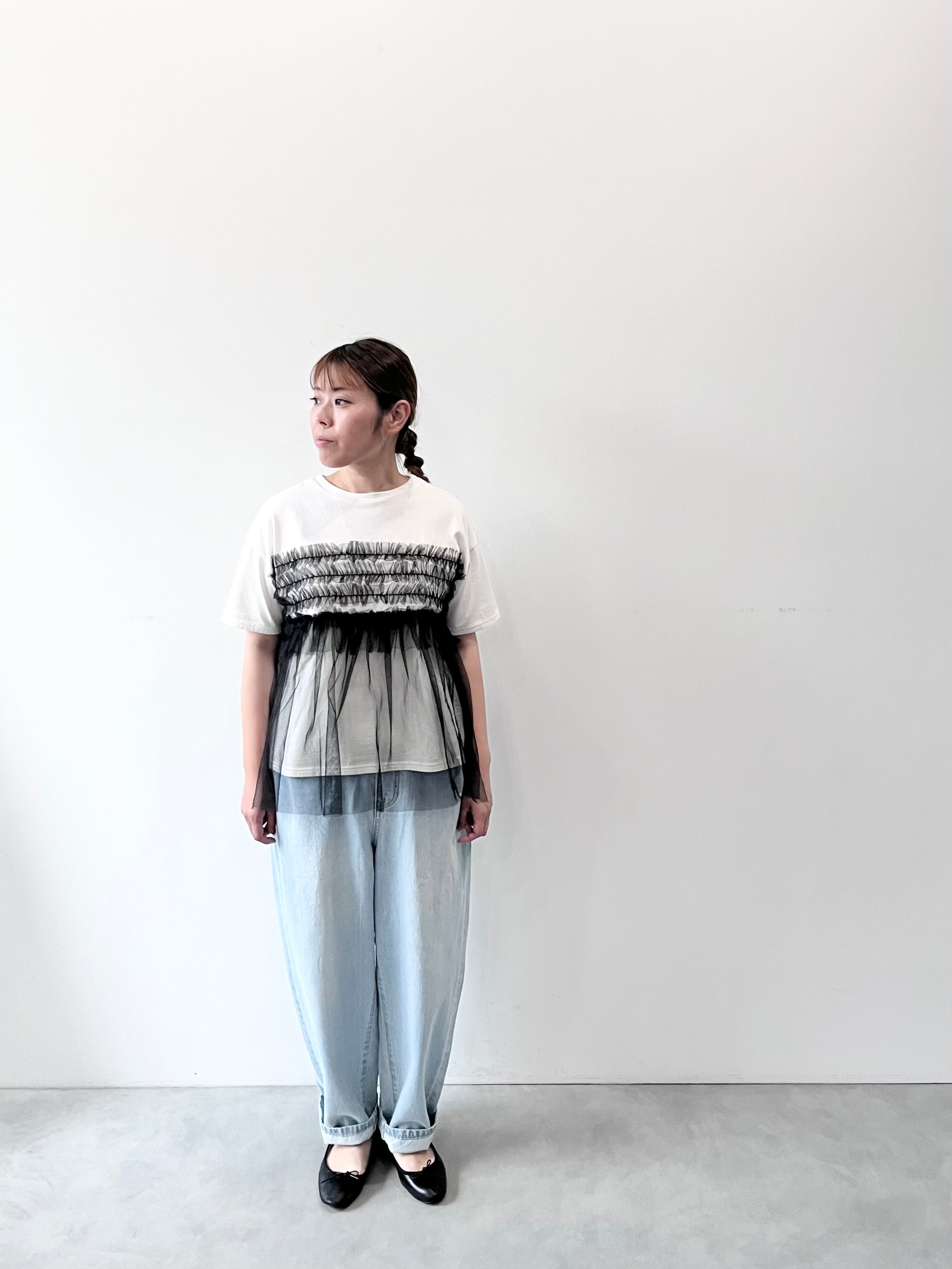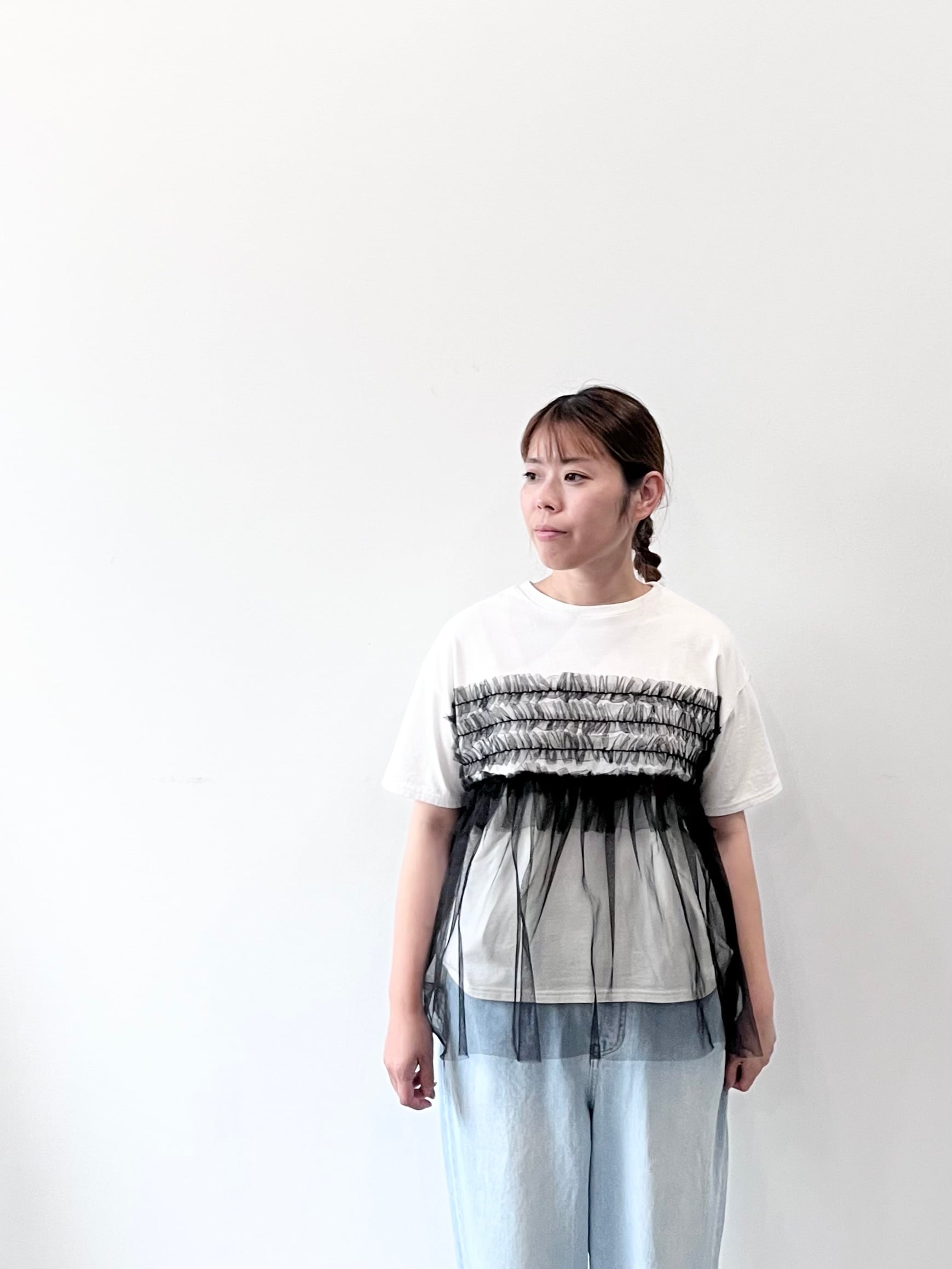 たっぷりとあしらわれたチュールが可愛いプルオーバーで、デニムやワイドパンツなどを合わせて甘すぎない大人カジュアルスタイルにもおすすめの一枚です。