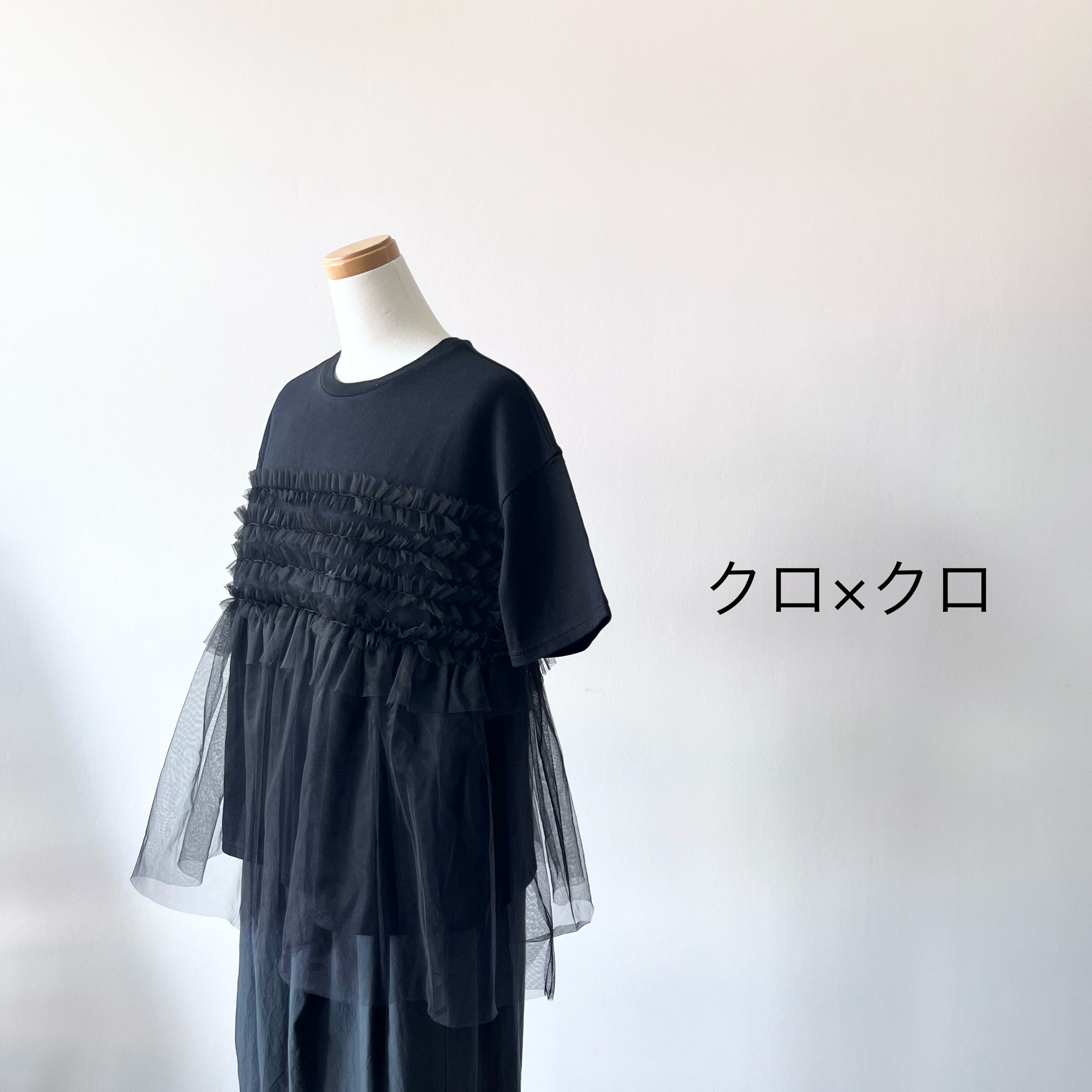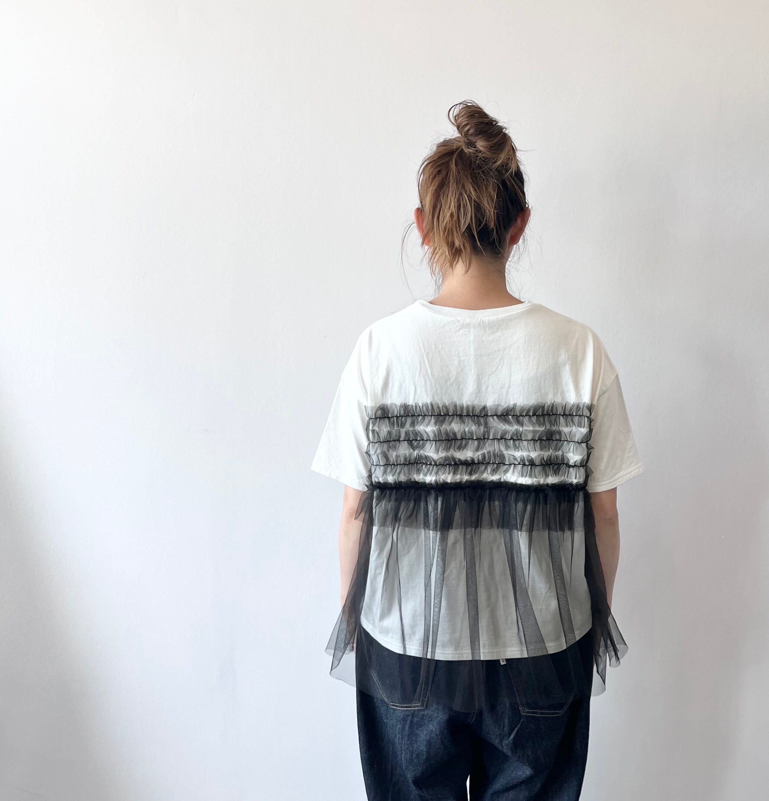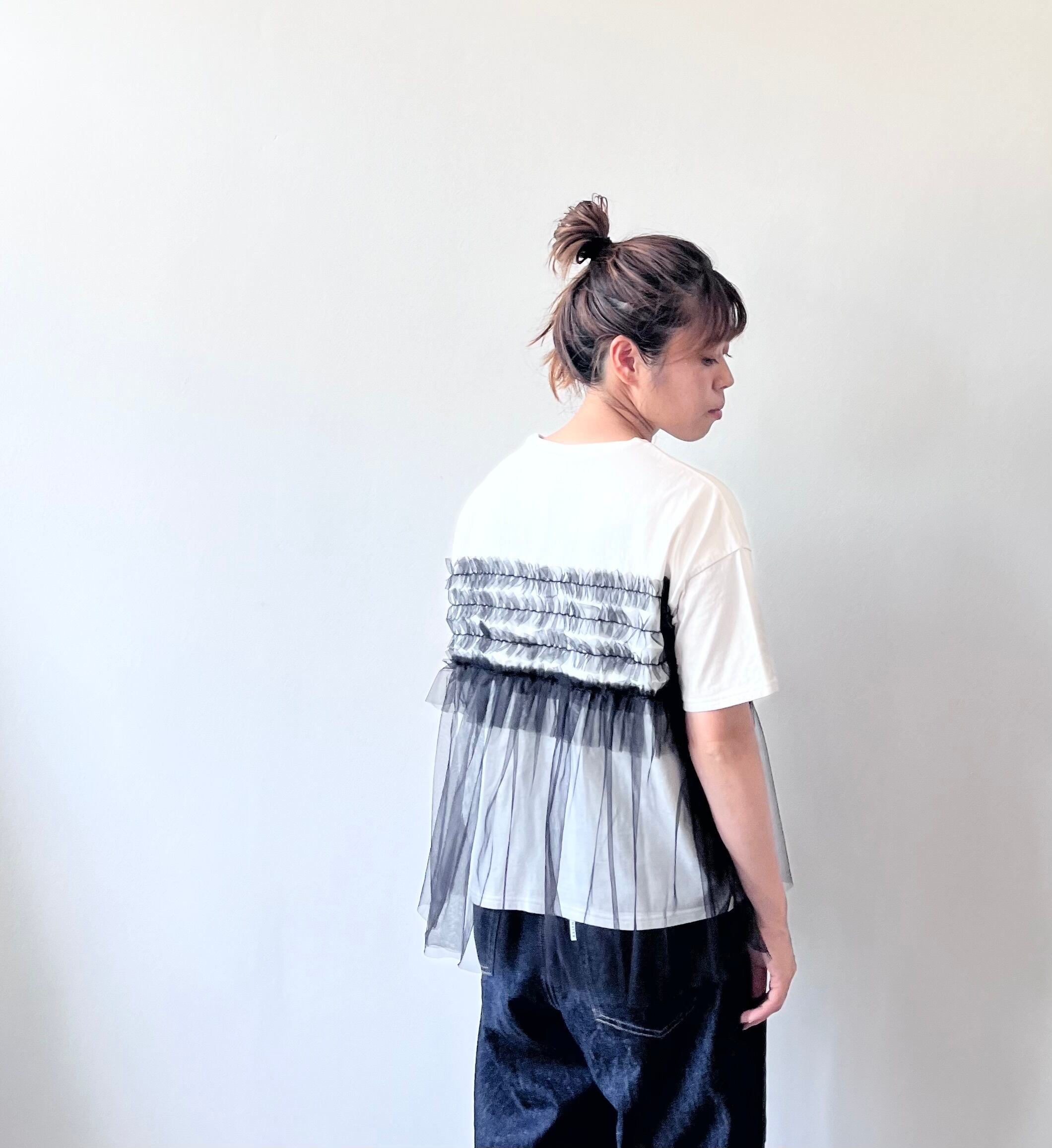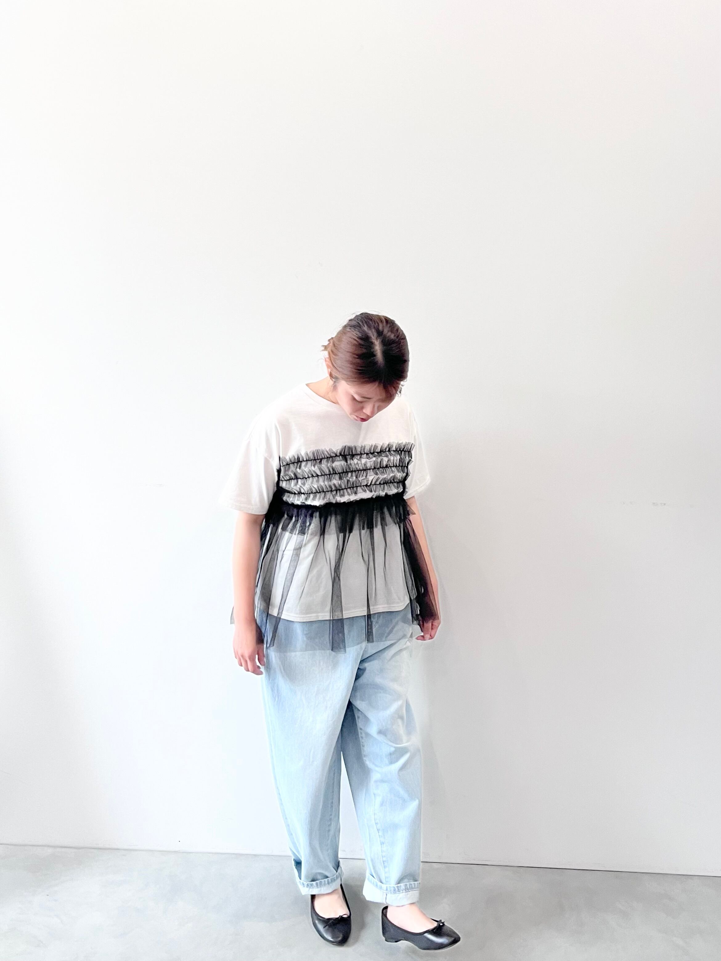 たっぷりとあしらわれたチュールが可愛いプルオーバーで、デニムやワイドパンツなどを合わせて甘すぎない大人カジュアルスタイルにもおすすめの一枚です。