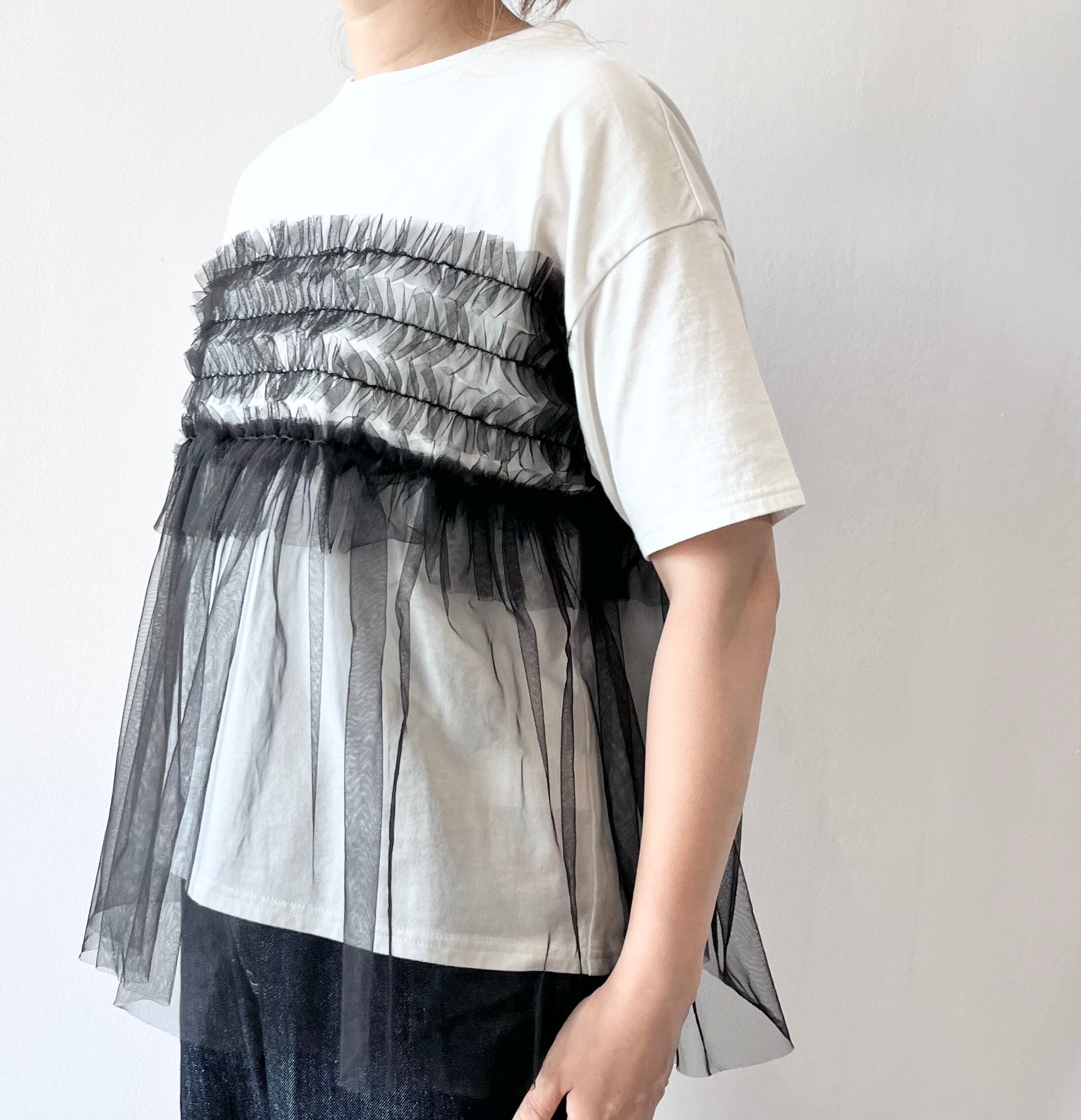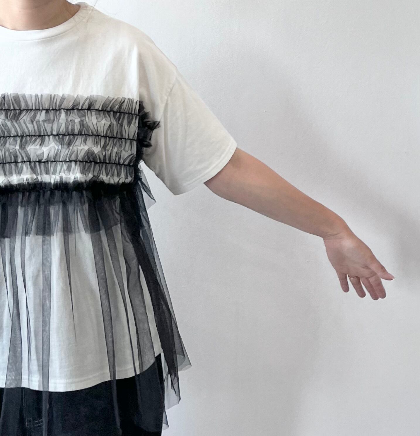 一枚でコーディネートの主役になってくれるチュールプルオーバーが入荷。